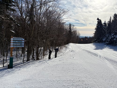 Route 103 is named for the main Vermont State route that runs through the town of Ludlow. It's short connector trail that continues Express Lane over to Lower Timberline and Upper Arrow. It's unclear another a new trail name was needed here instead of extending Express Lane but it's one more for the trail count.
