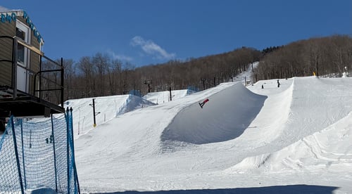 Halfpipe is a monstrous feature where the daring show off impressive tricks. As of the 2023-2024 season, it was the last remaining half-pipe in the Northeast. It's 18 feet high and 100 feet long.