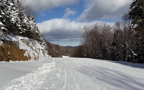 Blue Moon a mostly flat trail connecting Sunset Strip and Upper Mountain Road to Lower Limelight down to the Quantum Six lift. Anywhere else on the mountain, this would be considered an easy trail, but it would be misleading to have an easy trail that continues on to an intermediate trail. Plus it has "blue" in the name.