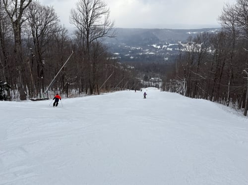 While The Plunge is the only advanced trail down to the Solitude base, it may be easier than Screamin' Demon or Boomerang, depending on the day. Those other trails tend to get more traffic and therefore build up more ice and moguls as the day goes on. It is a bit shorter and steeper than those other trails.