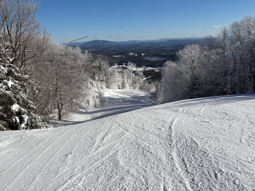Along with Lower Chief, Upper Chief is one of the oldest trails on Okemo, following the original Native American theme. It's one of the widest trails on the mountain. It is often used for ski races, so it may be closed on some weekends, but you'll be able to watch the racers on your ride on the Sunburst Six. Because it's used for races, it's usually very well maintained. It twists and turns down the mountain, ending when Fast Lane and Chute funnel in to Lower Chief.
